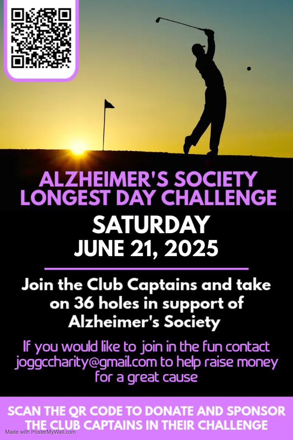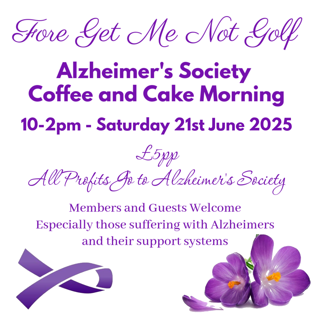On Saturday 21st June, the club will be supporting the Alzheimer’s Society with a Fore-Get-Me-Not Golf Longest Day Challenge and a Coffee & Cake Morning in the clubhouse.